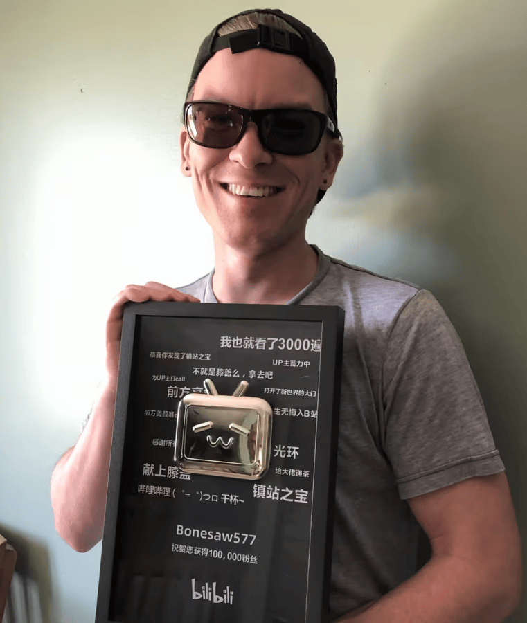 不久前,Bonesaw收到了B站贈送的10萬粉絲紀念牌