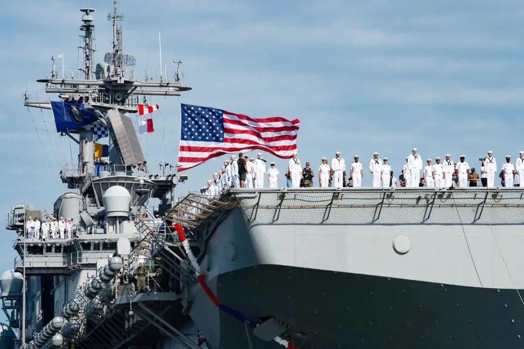 另一個,則是在演習項目中加入一道硬菜,要測試各類武器對航母的打擊效果,靶船是一艘排水量達4萬噸的兩棲攻擊艦。