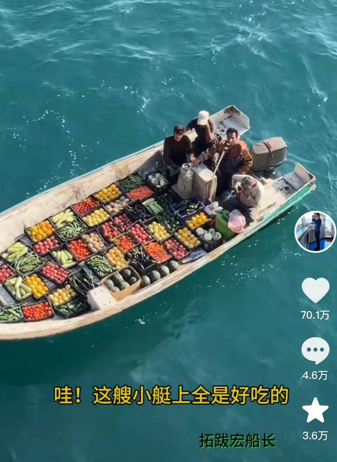 30個桶能換這麼一船蔬菜水果。
