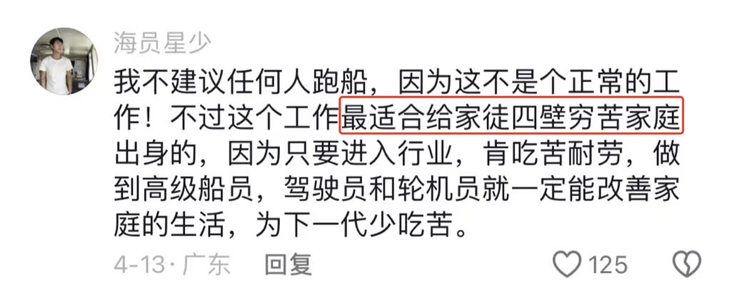 有很多熱心網友,不遺餘力勸説年輕人不要當海員。