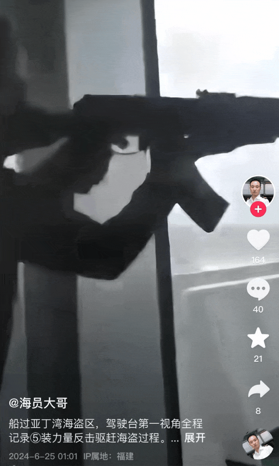 一般國企的船有軍隊護航,民企的船會僱傭武裝護衞隊員,或者當地的保鏢、大兵,保障船的安全。