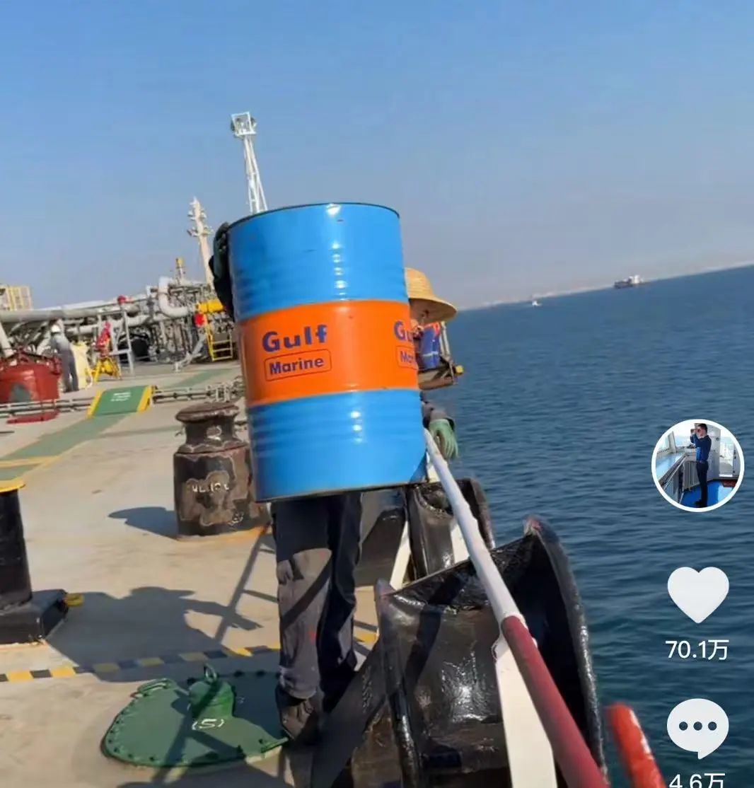 視頻中,中國貨船上的空油桶,到了阿聯酋海域,竟然成了硬通貨。