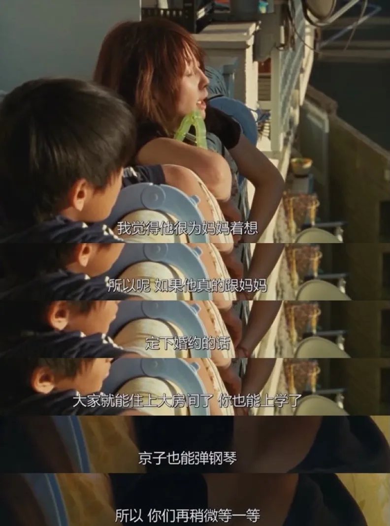 是枝裕和用紀錄片般的寫實與冷靜,讓我們真正地進入孩童的視角,去感受媽媽缺位的一年中,他們從希望到失望,再到決意學着自己長大的心如死灰。