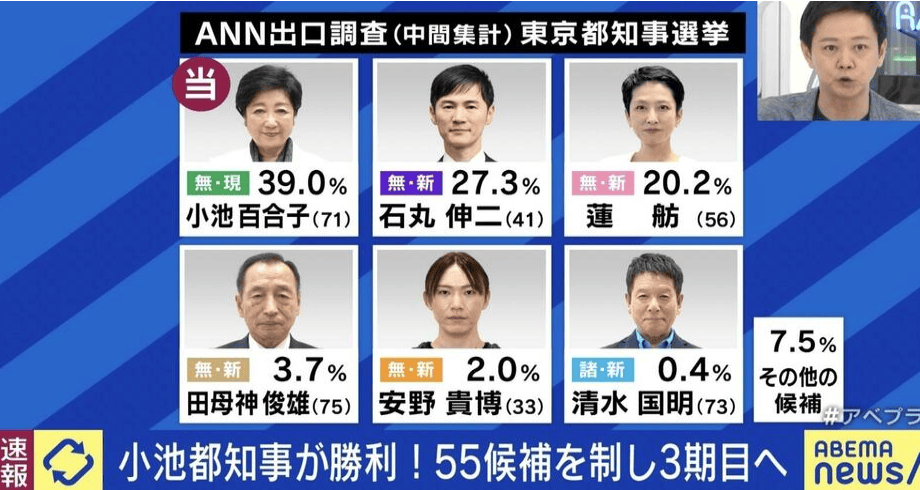 71歲的現任東京都知事小池百合子,又雙叒叕贏了!在60.62%的選舉投票率下,以絕對優勢獲得第三次連任。