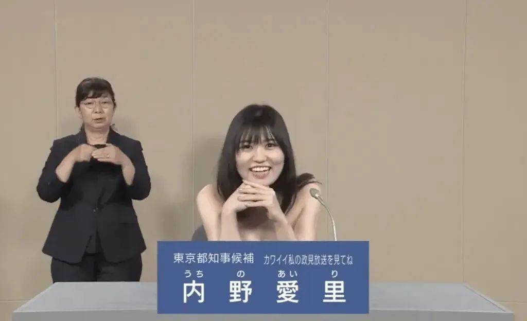 有個叫內野愛裏的候選人,竟然對着鏡頭脱去上衣,上身只剩下一件內衣,還問自己是否性感……