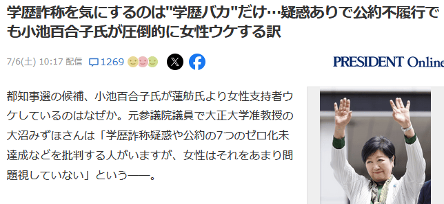 本次選舉中,小池百合子也曾陷入爭議,主要是涉嫌學歷造假問題。