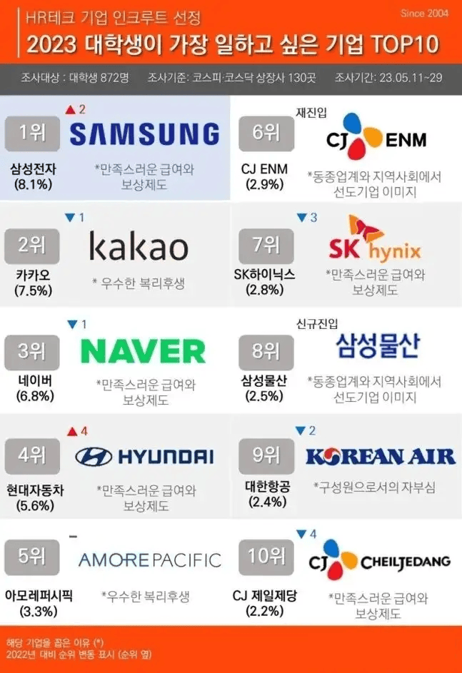 韓國的大學畢業生,更期望進入三星、現代、LG這樣的大廠工作。
