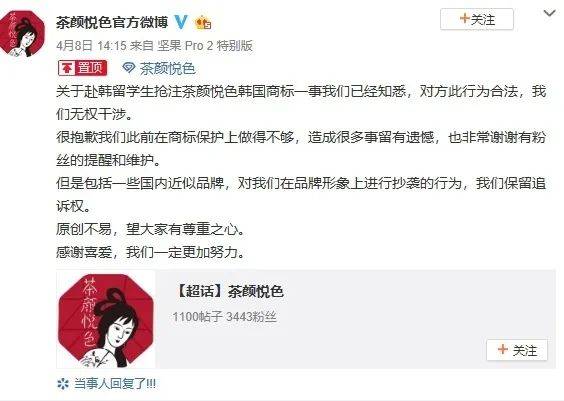 2019年,茶顏悦色還被赴韓留學生在首爾搶注了商標。