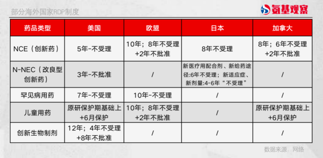 比如最早實行RDP制度的美國,其規定自生物創新藥上市日起,12年內FDA不得批准仿製藥的上市申請。其底層邏輯在於,誰做原始的安全性有效性數據,誰擁有數據的所有權,誰就應該得到相應的保護。