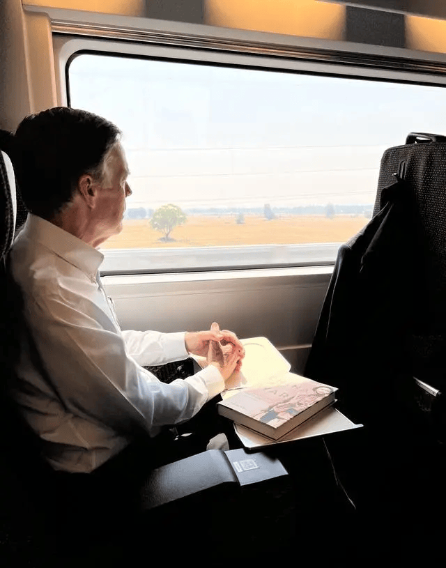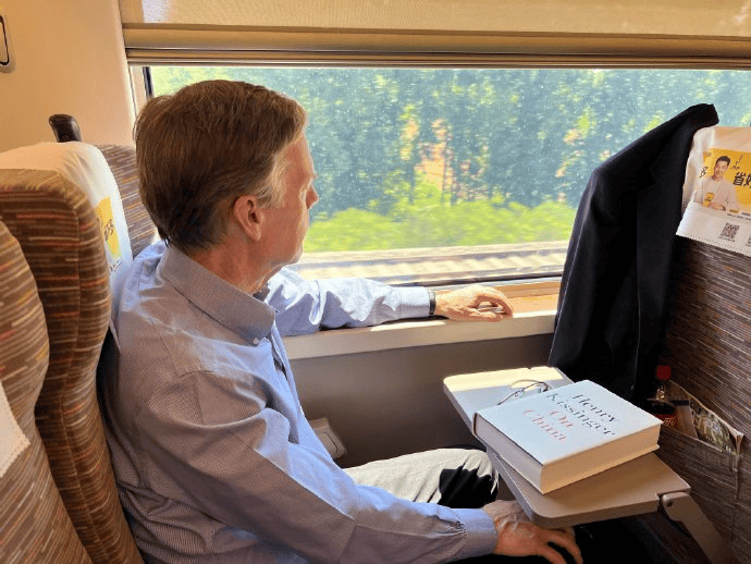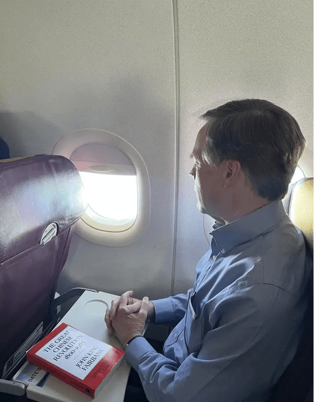 去武漢——他已經去過武漢了,看的書是基辛格的《論中國》——現在他又去武漢,這次拿的是老布什《中國日記》。