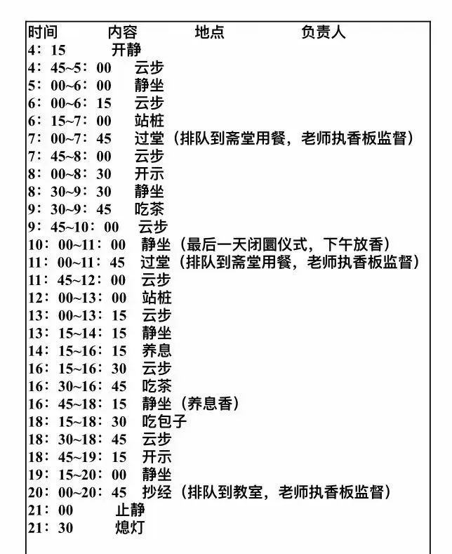 開學的第一個月主要是磨練我們,每天早上四點起牀,跑操、練功、上早課,六點半吃早飯,接下來休息半個小時,繼續練功、幹活,收拾衞生、種地、搬木頭等等,直到晚上九點休息。
