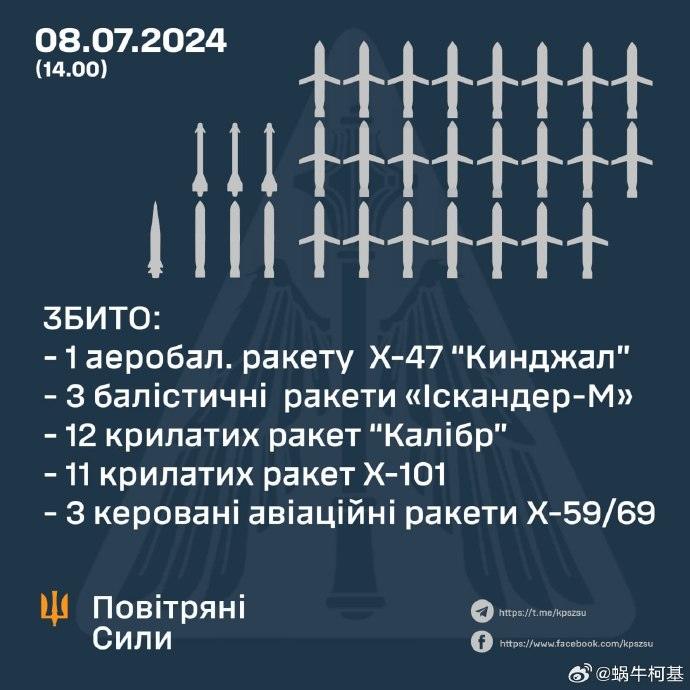 據初步數據,俄羅斯戰犯總共發射了38枚各類導彈: