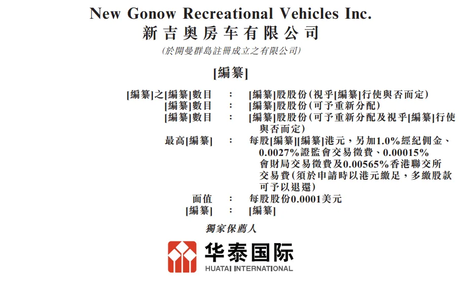 據港交所披露,新吉奧房車有限公司遞表港交所主板,華泰國際為其獨家保薦人。