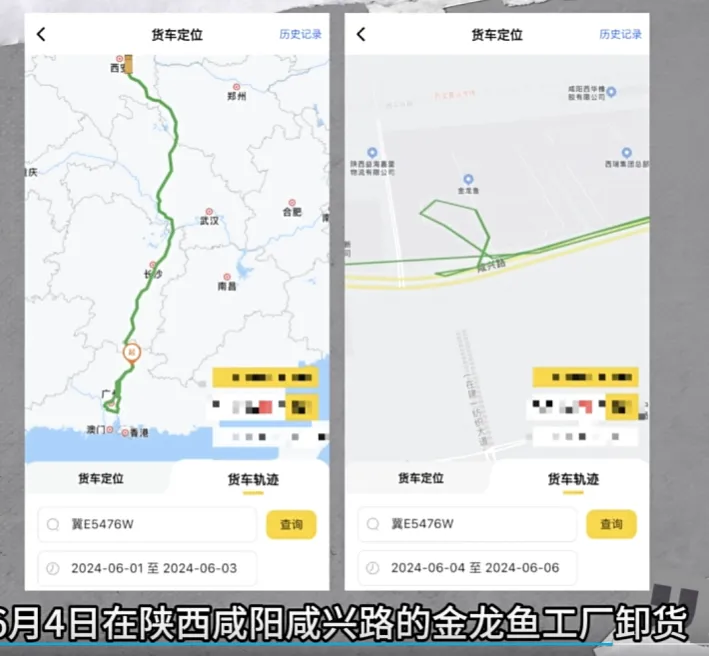 博主通過查閲貨車軌跡,發現最後這輛車裝了36噸“問題油”,最後送去了“陝西省漢中市新力油脂公司”。