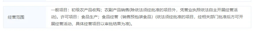 初級農產品收購;農副產品銷售(除依法須經批准的項目外,憑營業執照依法自主開展經營活動)。許可項目:食品生產;食品經營(銷售預包裝食品)(依法須經批准的項目,經相關部門批准後方可開展經營活動,具體經營項目以審批結果為準)。