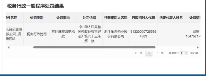 對於醫藥類企業來説,税務問題也是比較多發。作者近期注意到,上市公司樂普醫療100%持股的的浙江樂普藥業股份有限公司,今年1月份因逃税被當地税務稽查部門重重處罰了154萬多元。