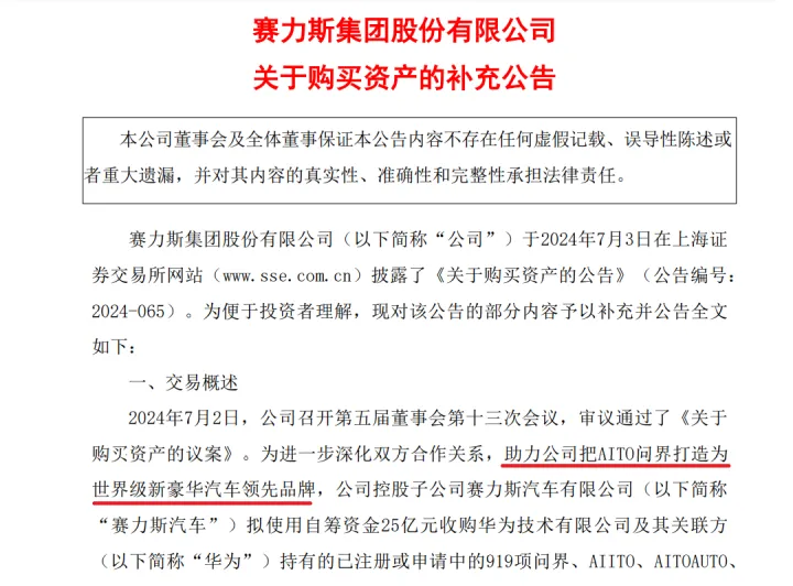 日前,賽力斯發佈了一份收購“問界”商標的補充公告,展示了“把AITO問界打造為世界級新豪華汽車領先品牌”的願景。