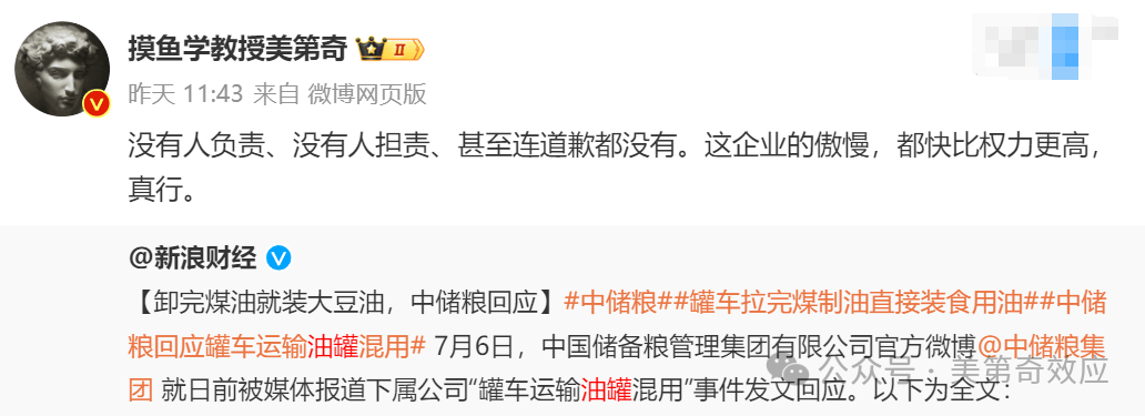 按理説中儲糧這種級別的央企單位都敢曝光了,下游買油的機構,總不能比共和國長子更不敢得罪吧?