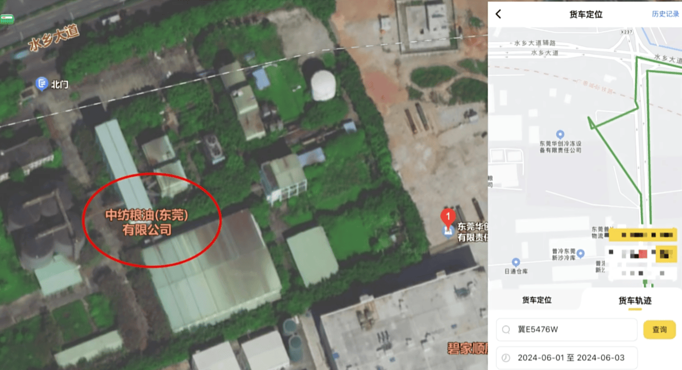 6 月 1 日,這輛罐車在中紡糧油(東莞)有限公司裝車,之後一路向北。