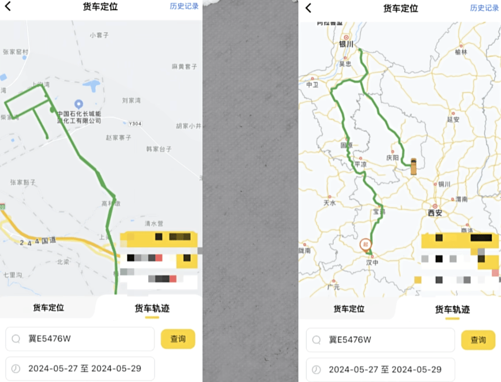 這輛罐車從新力油脂卸貨後,走褒斜道經寶雞北上,回到銀川寧武市寧東鎮,繼續在國能寧煤裝煤制油,然後向西安方向行駛。