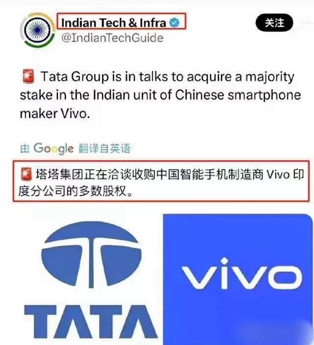 據印度當地媒體報道,印度塔塔集團目前正在洽談收購中國智能手機制造商vivo印度分公司的多數股權、成立合資公司等事宜。據稱,印度政府希望印度當地的合作伙伴在與中國手機公司組建的合資企業中至少擁有51%的股份。印度政府還希望合資企業擁有本地高管和本地分銷渠道。