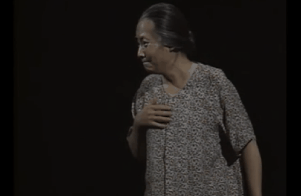 舞台上,唯一一束燈光打在宋丹丹身上,像時間洪流一點一點漫過她,宋丹丹就這麼和何老太一起蹣跚,哀慼又驕傲回首着過往。