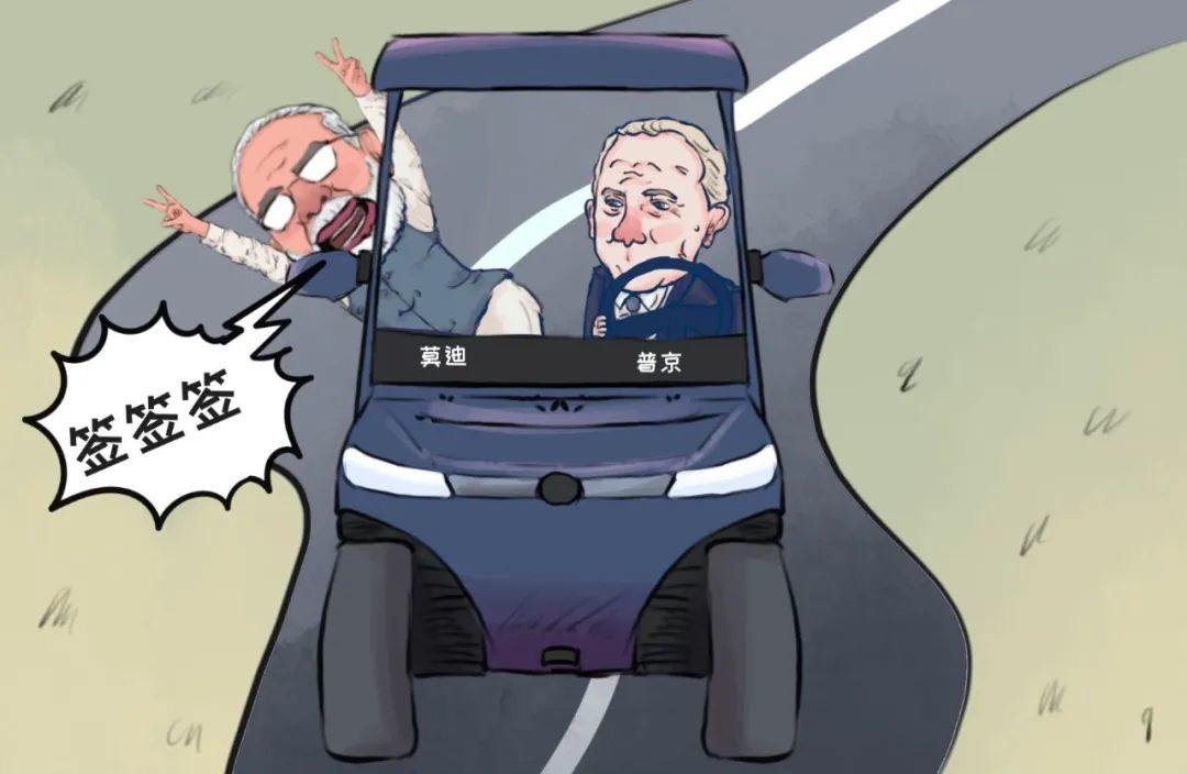 普京親自駕駛高爾夫球車帶莫迪遊覽官邸