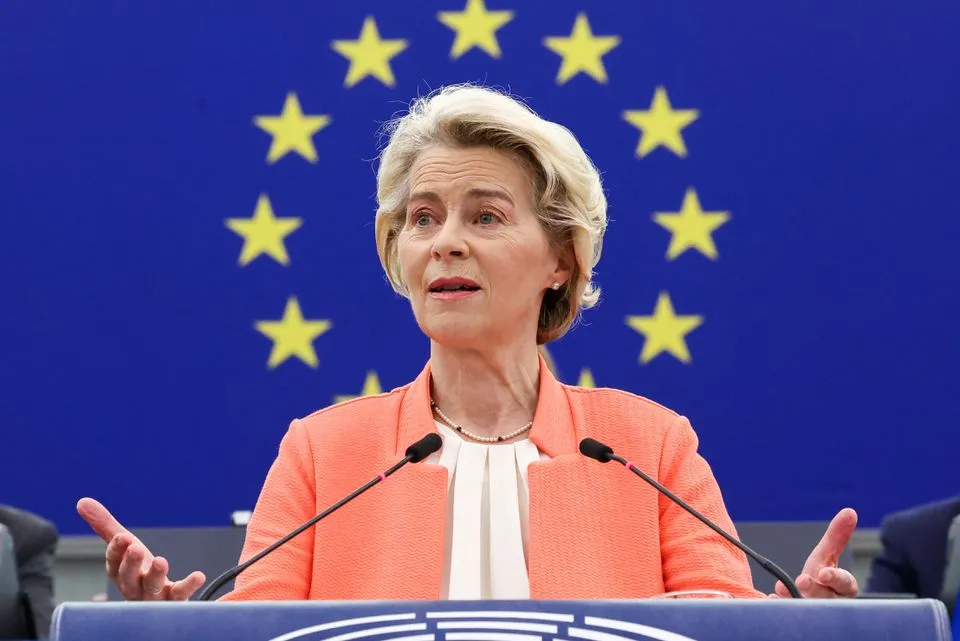 2023年9月13日,歐盟委員會主席馮德萊恩在向歐洲議會發表年度“盟情諮文”時,宣佈歐盟委員會將對中國電動汽車啓動反補貼調查(圖源:路透社)