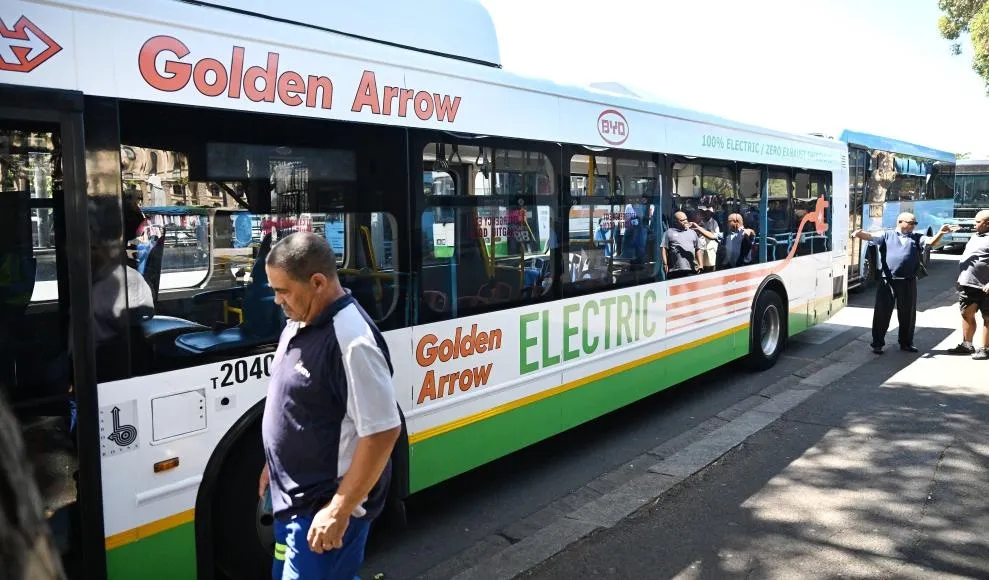 2024年2月,在南非立法首都開普敦,人們在公交總站登上一輛比亞迪電動公交車(圖源:新華社)