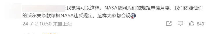 “我覺得咱們可以這樣:NASA依照我們的規矩,向我們申請月壤。我們也依照他們的《沃爾夫條款》,舉報NASA違反規定。這樣大家都是按規矩辦事,就沒有違規的後顧之憂了。”
