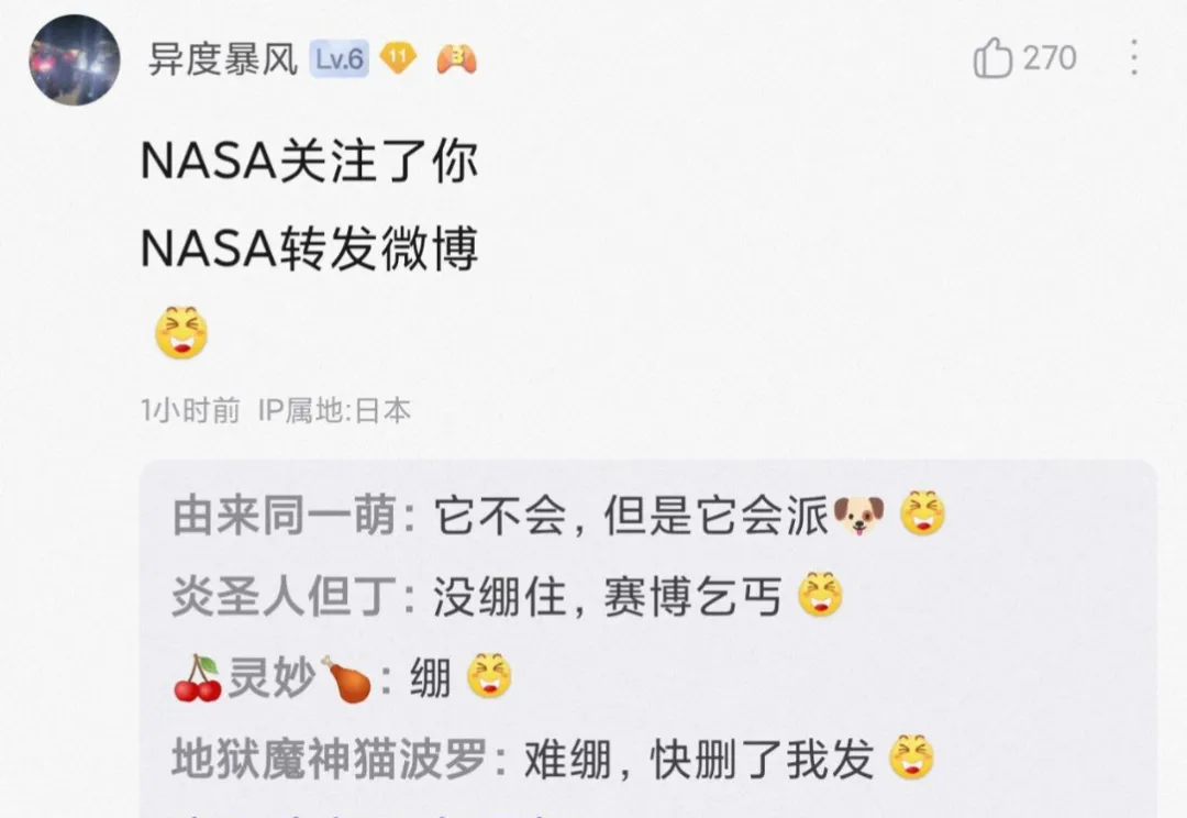 “NASA轉發了你的動態。”