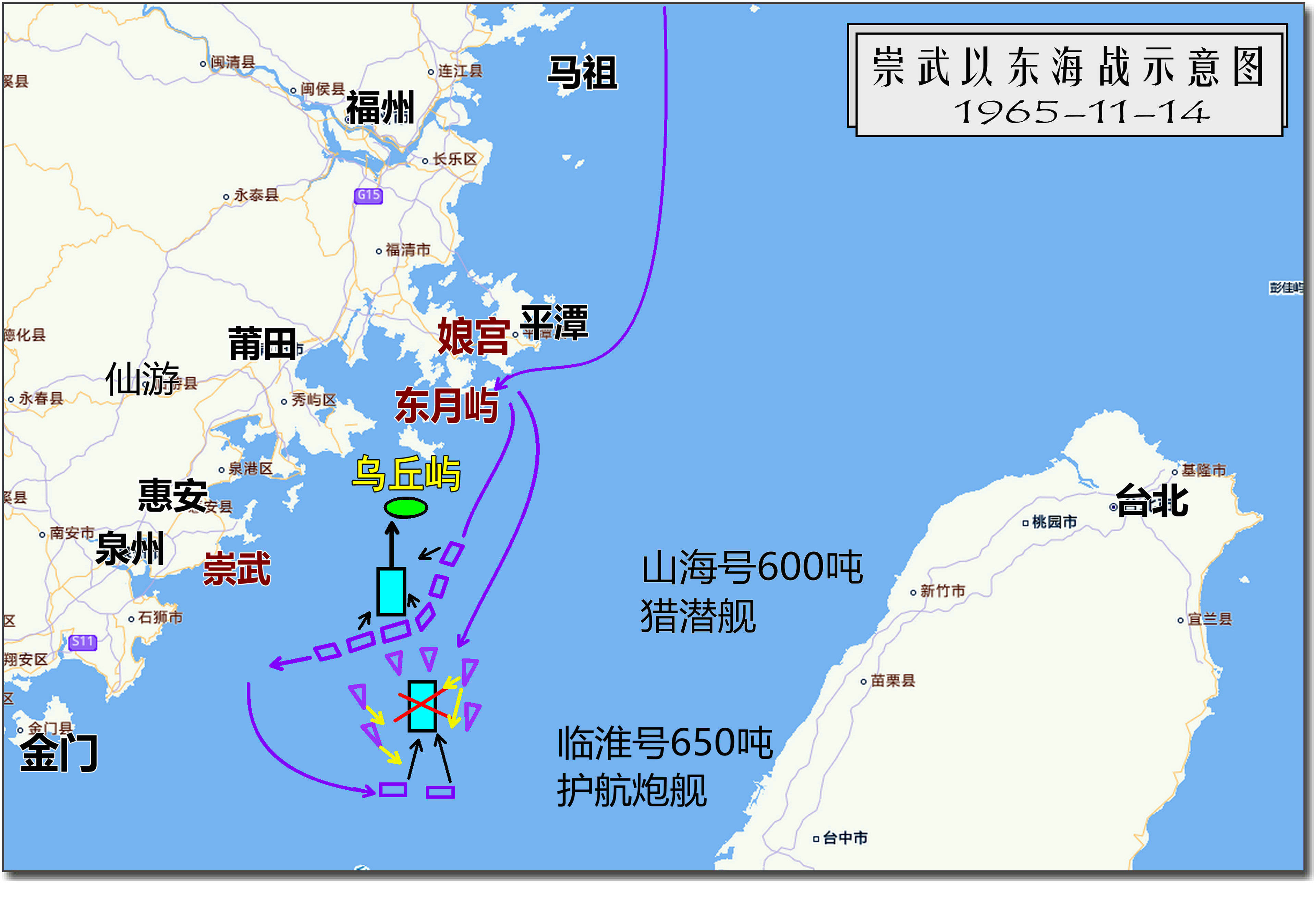 1965年11月13日中午,國民黨海軍巡防第2艦隊臨淮號(原名永昌)號護航炮艦和山海號(原名永泰)獵潛艦由澎湖出航,企圖襲擾福建省沿海一帶。