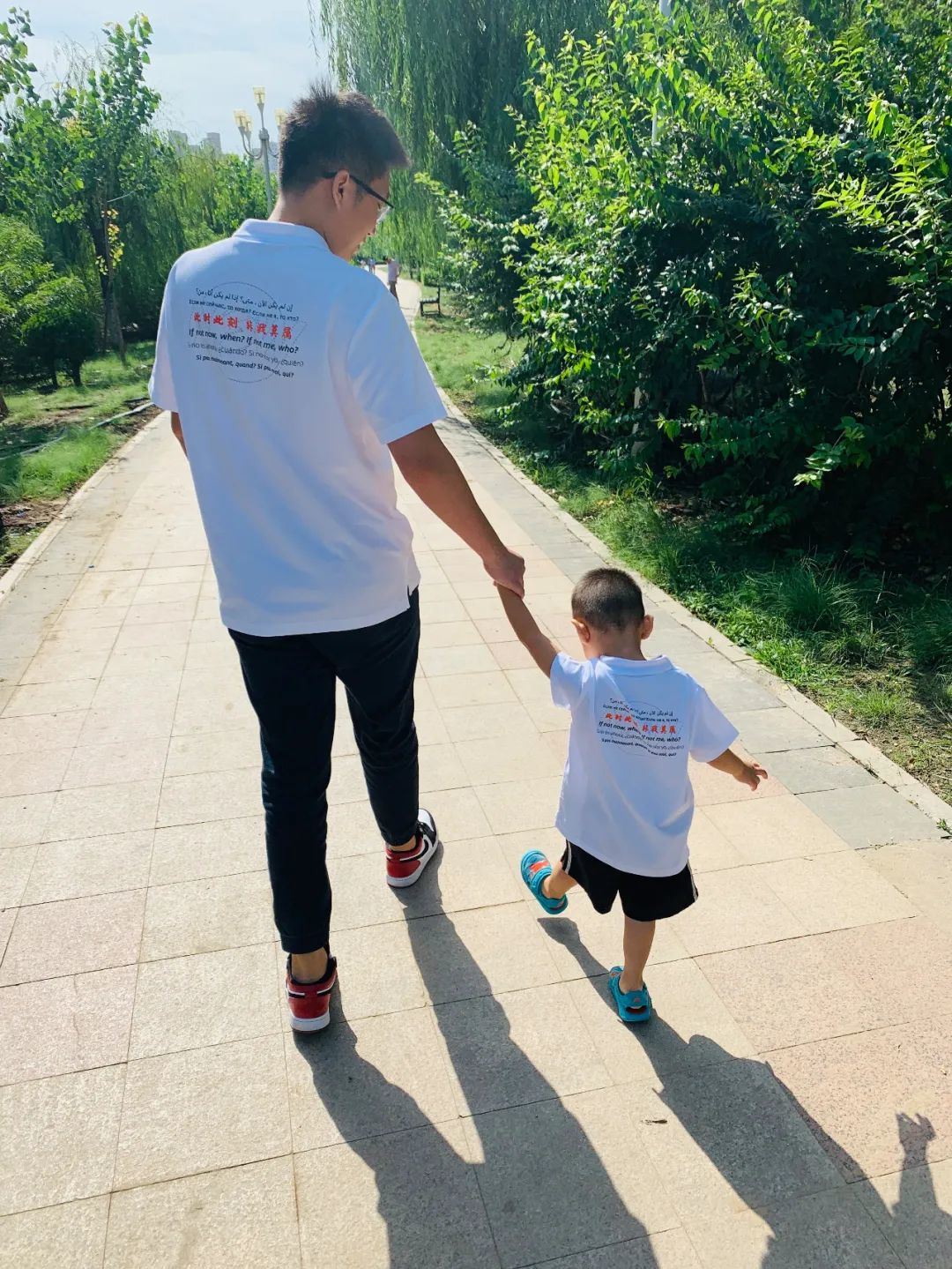 韓龍牽着圖圖的背影。那一年,圖圖3歲。