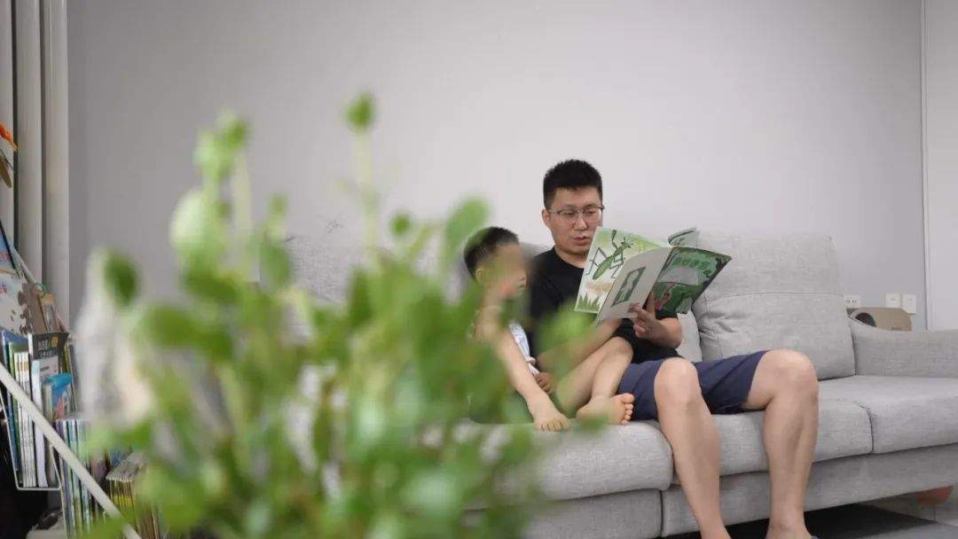 韓龍在陪圖圖讀繪本。親子陪伴和繪本閲讀對孩子的康復有幫助。