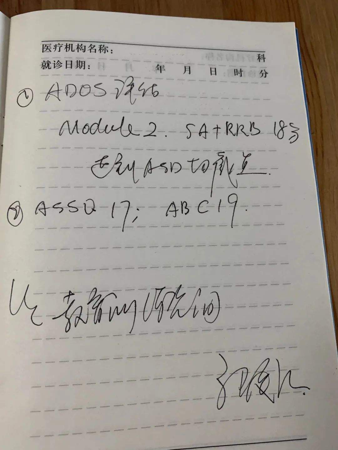 兩口子慌了,打開手機搜,跳出“自閉症”。再看症狀:刻板行為、興趣狹窄、精細運動能力差……很多都對得上。他們趕緊預約掛號,到醫院後填量表,面診。診斷書出來了,上面寫着“ASD傾向”。
