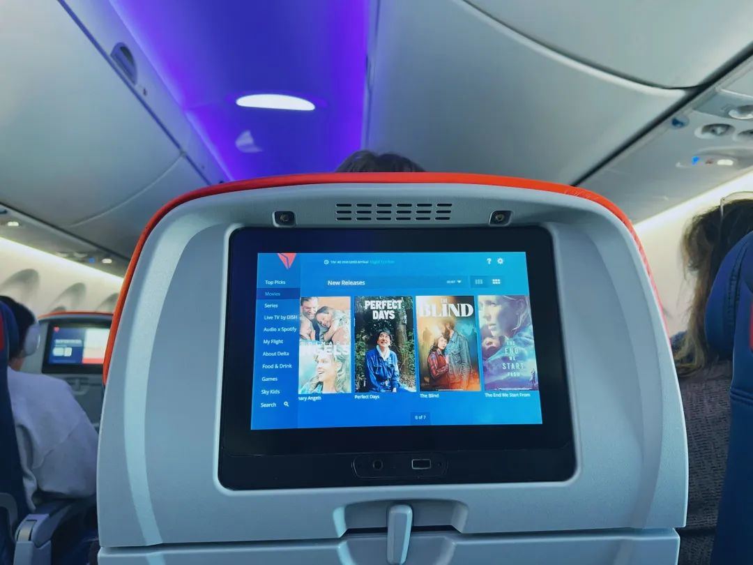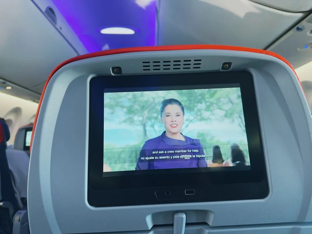 艙門關閉,乘務長廣播,小電視開始播放達美航空自己的廣告,然後就是安全須知的介紹。