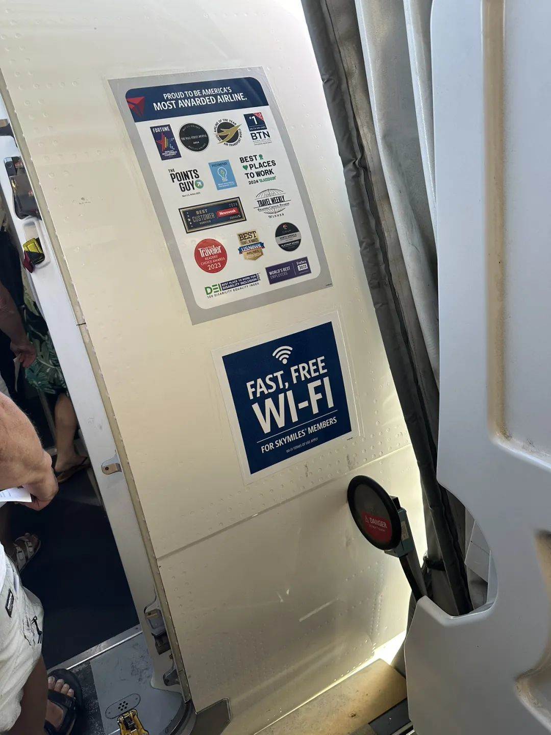 飛機艙門口寫着“FREE FAST WI-FI FOR SKYMILES MEMBERS”我想試試天合聯盟其他航司的金卡能不能用,事實證明確實不行。我又研究了下付費,也不行,看來是隻提供給自己的高端旅客。