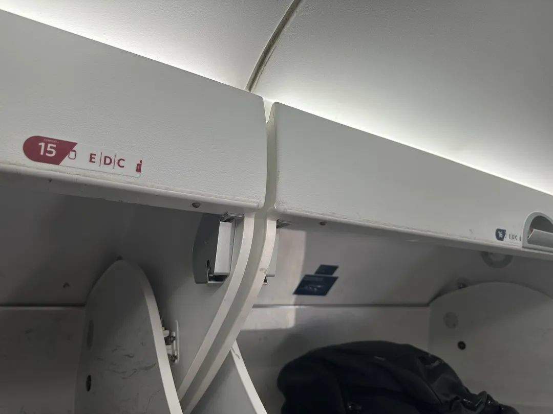 回到自己座位上,現在是18:20分,抬頭看了看四周,發現10-15排的座位號碼是紅色的,從16排開始往後是藍色的,而且我這排的腿部空間真的很大,不禁讓我懷疑從19排被調整到了15排,難道是被升了艙?看來行走江湖,手握幾張航司金卡還是有用的(真的很想要一張寰宇一家高卡)