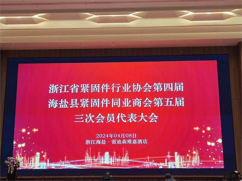 為提振行業發展信心,增強行業內生動力,浙江省緊固件行業協會四屆(海鹽縣緊固件同業商會五屆)三次會員代表大會於2024年4月8日下午在海鹽雷迪森維嘉酒店順利召開。