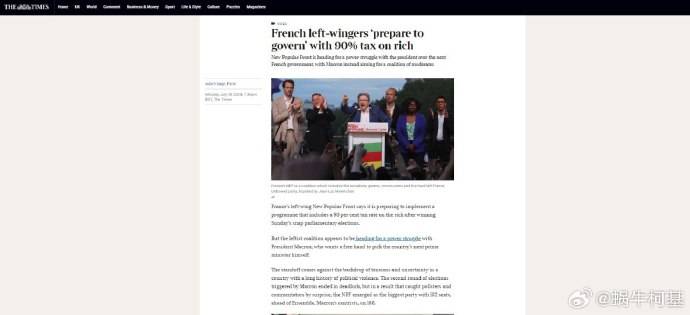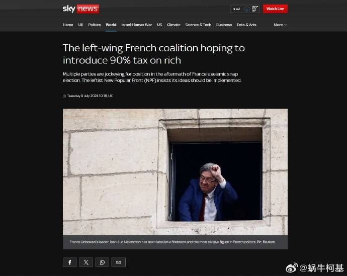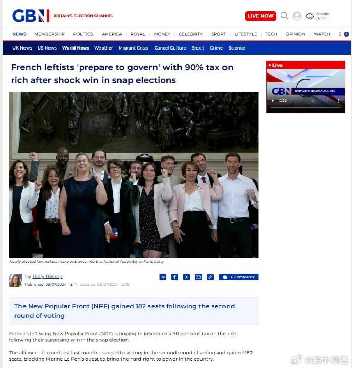 🇫🇷 據法國和英國媒體報道,在法國大選中獲勝的左翼聯盟新人民陣線 (NFP) 尋求對法國年收入超過40萬歐元的人員徵收90%的税