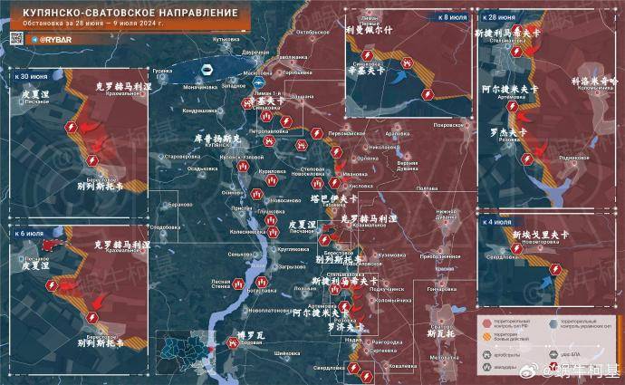 ❗️🇷🇺🇺🇦 截至 2024 年 7 月 9 日庫普揚斯克-斯瓦託一線情況