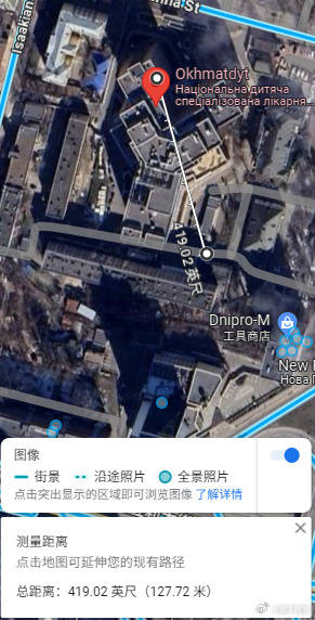 用來當比例尺的就是Okhmaditu兒童創傷中心,和Okhmatdyt兒童醫院屬於附屬建築,所以別扯什麼目測差
