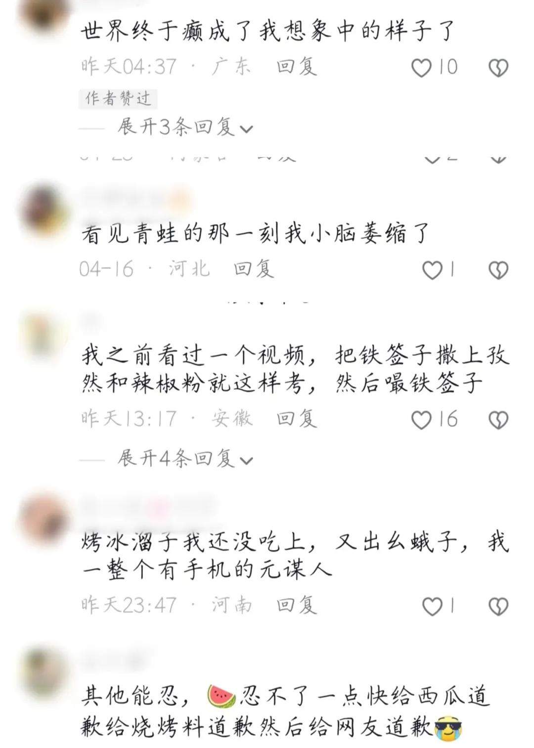 “其他能忍,烤西瓜忍不了一點,快給西瓜道歉,給燒烤道歉,然後給網友道歉。”