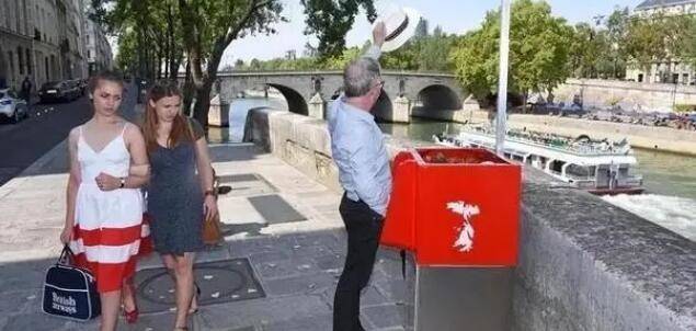 即便現如今,在風光旖旎的塞納河畔,還有這玩意,下半部分接尿,通過吸水繩索,將尿液通過毛細管現象輸送到上半部分的土壤裏,滋養綠色植物,實現“尿培”,又彰顯着科學的光輝,又生態環保,不愧是我大法蘭西!這老爺子一邊噓噓一邊向塞納河中泛舟盪漾的遊客脱帽致意,多有紳士風度: