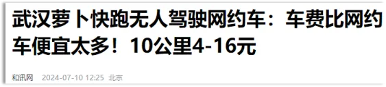 比如在武漢,無人駕駛網約車跑10公里,只要4-16元,最低每公里只要4毛錢。而坐普通網約車則要18-30元。
