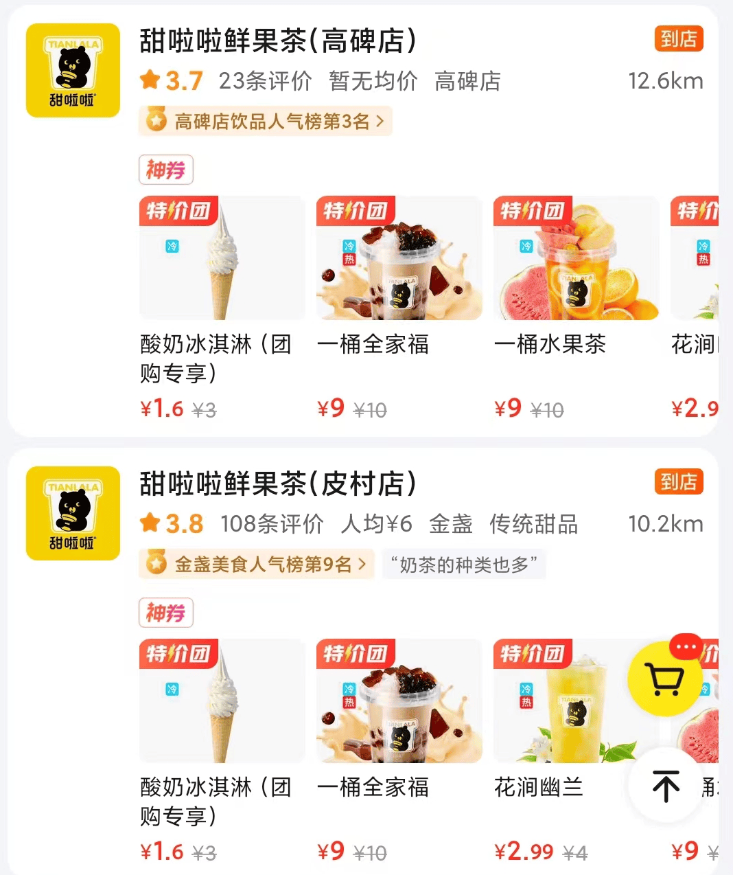 與此同時,作為友商的甜啦啦推出萬店目標,開店速度進一步加快,更頻繁地出現在消費者視線中。在美團App上,消費者能夠輕鬆買到1.6元的酸奶冰淇淋、3.3元的冰鮮檸檬水,甚至是2.99元的花澗幽蘭。