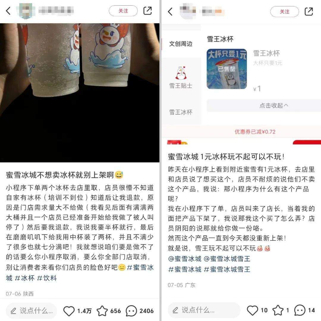 一切早有徵兆。蜜雪冰城官方賬號在小紅書官宣要在7月3日上線一塊錢冰杯的時候,就有經銷商在評論區宣佈下架。