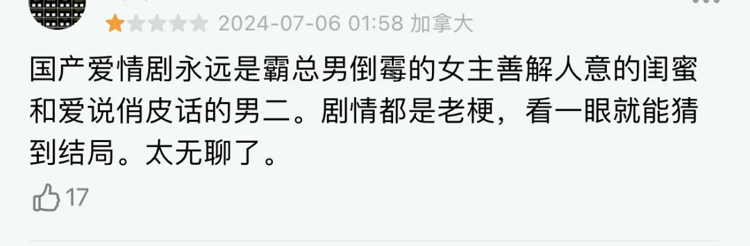 説到底,這部劇雖然加入了新時代的痛點,但依舊有掩蓋不住的古早現偶老套的味道,和片名一樣同質化。
