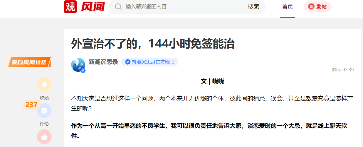 現在這個什麼新潮沉思錄,自從玄處徹底消失以後,就變成了這個樣子。吹一個144小時免籤,就這個水平。