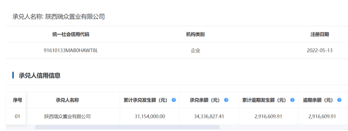 華宇集團幾乎全資持股的陝西瑞眾置業有限公司在6月底商票逾期餘額2917萬元;